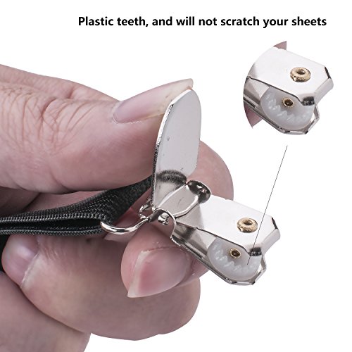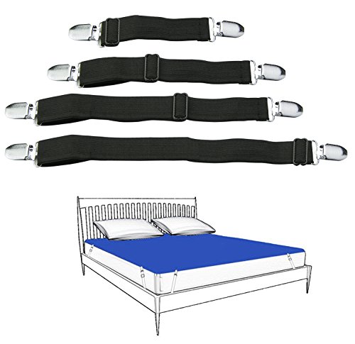 - EASY TO USE: Wider elastic provides stable and stronger grip for heavy duty purpose;Easy to Use ,just attach the suspender to your bed sheet by using the clamps, then your sheet will look great all the time. Perfect Fitted Bed Sheet and mattress Cover Fastening System.
