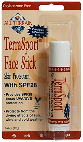 This bundle includes two .6 oz. sticks of TerraSport SPF 28 Face Stick. From hiking, camping, picnics to various sports activities, All Terrain TerraSport SPF 28 Face Sticks has your skin covered, naturally! This extremely effective broad-spectrum protection uses Non-Nano Zinc Oxide to offer safe and effective, chemical-free sun protection. TerraSport SPF 30 Sunscreen Stick is water and sweat resistant to making it perfect for all outdoors activities. Oxybenzone and paraben-free, broad spectrum UVA (skin cancer)/UVB (sunburn) protection, non-whitening, transparent zinc oxide, no eye sting, cruelty free, perfect for on-the-go application with no mess, travel-size.Feature