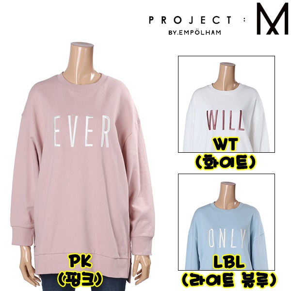 프로젝트엠 여성용 자수 레터링 오버핏 맨투맨 EPY1TR2201