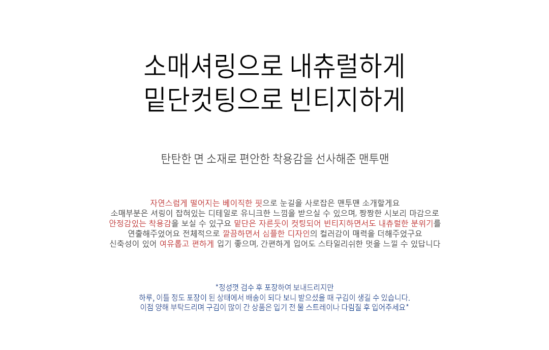 .같은 사이즈라도 체형에 따라 핏감이 조금씩 다를 수 있습니다.