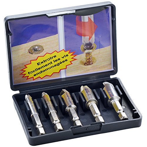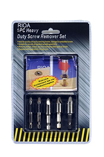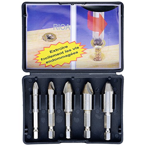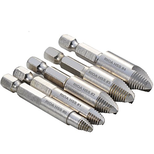 Rioa 5pcs Damaged Screw Extractor Bolt Screw Stud Remover Set Drill Hex Shank 1/4''
