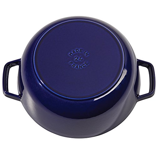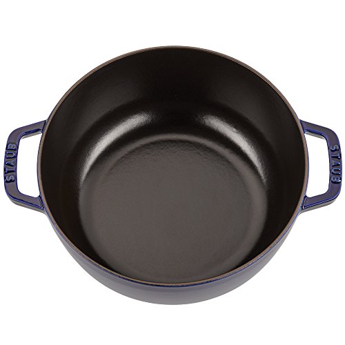 Staub enameled cast iron cookware is the top choice for chefs and home cooks alike. Rooted in French culinary heritage, Staub's renowned cocottes are timeless pieces, perfect for casual meals or sumptuous suppers. The Essential French Oven with Chistera lid is the latest star in the cast iron collection. Like Staub's signature flat lid, the domed Chistera lid has excellent self-basting properties. Usually, a convex lid causes condensation to fall to the sides. The innovative, Chistera drop-structure lid solves this problem by putting a twist on traditional spikes. Moisture cascades from the whole lid. This continuous basting guarantees delectable roast chicken and braised short ribs. What inspired this original design? Basque pelota players use wicker basket chisteras to scoop up balls and hurl them quickly. Under Staub's new lids, the chistera-shaped curves gather condensation to shower moisture upon the delicious dish that simmers inside.Feature