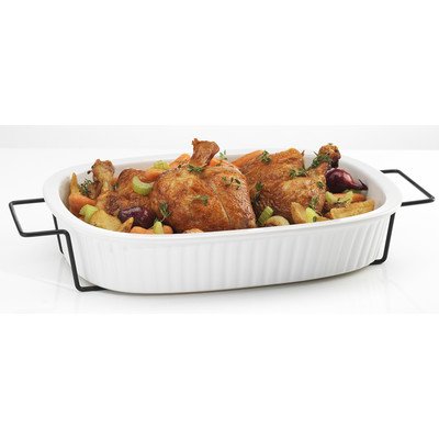 61465 Features: -Capacity: 2 qt.. -Color: White. -Set includes baking dish with rack. -Material: Ceramic. Product Type: -Baking and Roasting Dishes. Material: -Ceramic. Number of Items Included: -2. Non-Stick Surface: -Yes. Capacity in Quarts: -2 Quarts. Color: -White. Dimensions: Overall Product Weight: -4.38 lbs.Feature
