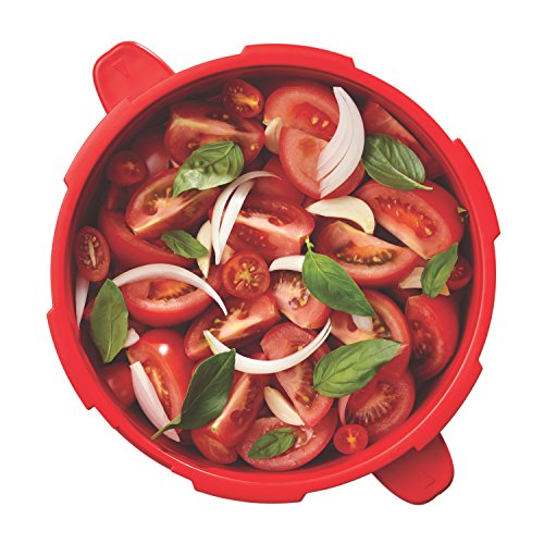 Save time and effort in the kitchen with the easy-to-use, easy-to-clean SilverStone Microwave Cookware 3-4/10-Quart Microwave Pressure Cooker. Uniquely designed for convenience and versatility, SilverStone Microwave Cookware takes the pressure out of cooking and puts it in the microwave. The cooker's all-around functionality makes it perfect for everything from a large batch of zesty rice pilaf or a nothing-to-it chicken and kale soup. And pressure cooking seals in even more of your favorite foods' nutrients and flavors. Toss chicken wings with your favorite Asian-style sauces then cover, lock and pop the cooker in the microwave and serve a succulent, finger-licking snack in minutes. Use the handy basket insert and steamer plate to cook several foods at the same time or to add a quick-cooking food later in the process. And utilize the plate to handily heat up leftovers without losing moisture in the food. The cooker features sturdy BPA-free construction and capacity for over a dozen cups of cooking liquids and ingredients, perfect for making an impromptu Italian pot roast when friends drop in. The lid features an array of safety features to help ensure quality cooking results and easy operation even for beginning cooks. Conveniently top-rack dishwasher safe, the microwave cooker is designed to fit most standard microwaves and comes with a Quality Assurance Guarantee. Easy, flavorful cooking's is just steps away, with the clever, versatile SilverStone Microwave Cookware 3-4/10-Quart Microwave Pressure Cooker.Feature