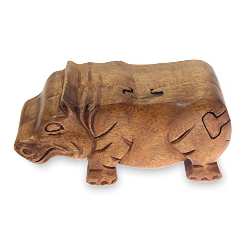 NOVICA "Hippopotamus" Hand-Made Wood Puzzle Box