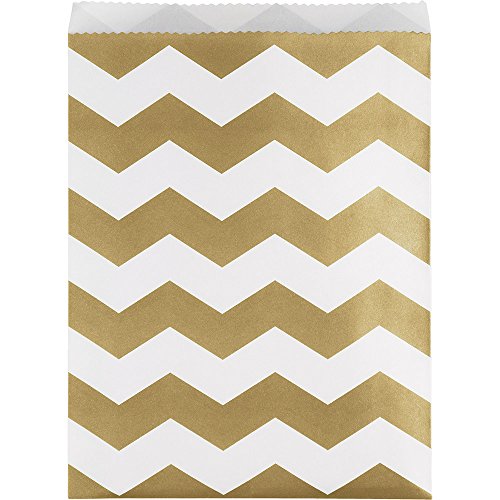 Creative Converting 315207 120-Count Paper Chevron Pattern, Gold, Large Treat Bags, Gold Chevron