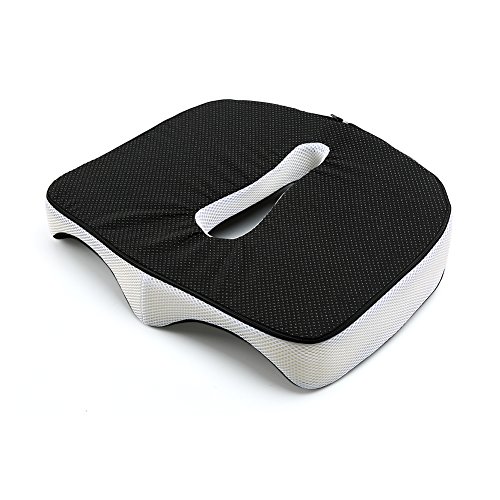 ? Features ergonomic hollow shape design that distributes weight evenly and promote proper posture and spine alignment ? The high-density foam with ventilation gap provides air flow while preventing the tailbone touch the sitting surface ? Provides support for hemorrhoids, prostate, and pregnancy ? Gives you better experience and concentration when working long hours at the office or driving