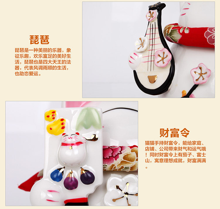 Lucky Luck Welcoming all year round all wishes come true. Lucky Cat Lucky raised his hands holding a bell, who has cherry, wisteria, chrysanthemums and morning glory four kinds of three-dimensional flowers, fine carving. Birthday, wedding gifts, home furnishings, store opening is a very good choice.