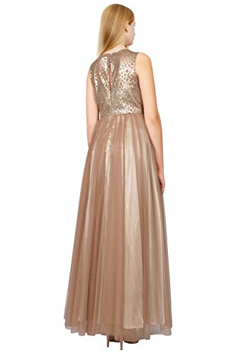 A sleek, lacy faux leather metallic bodice crowns a sweeping, ethereal tulle ball skirt. Features boatneck, sleeveless, full tulle skirt. Concealed back zip.