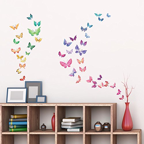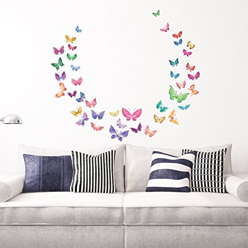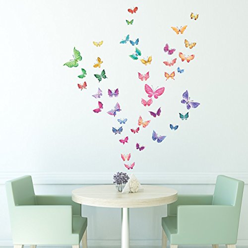 Decowall DW-1602 Watercolour Butterflies Kids Wall Decals Wall Stickers Peel and Stick Removable Wall Stickers for Kids Nursery Bedroom Living Room