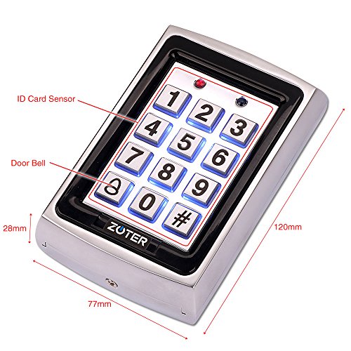 -. Binding : Electronics -. Brand : ZOTER -. EAN : 0611968090110 -. Feature : Metallic case for better protection / Support entry modes : Password Only / ID Card Only / Password + ID Card / Support 1000 standard users / Built-in proximity card reader (125KHZ ASK modulation) / A reliable entrance guard allows you to live a convenient life. So here we would like to recommend this ACR-K7612 non-contact induction card entrance guard password card access controller to all of you. You can use the induction card or enter password to get access to your building in an easier way. Our entrance guard can store up to 1000 P.R.Ivate PINs and accept 1000 cards in total. Come to take this helpful assistant home! -. Label : ZOTER -. Manufacturer : ZOTER -. Model : ACR-K7612 -. MPN : ACR-K7612 -. PackageQuantity : 1 -. PartNumber : ACR-K7612 -. ProductGroup : Photography -. ProductTypeName : SECURITY_ELECTRONICS -. Publisher : ZOTER -. Studio : ZOTER -. Title : ZOTER Metal RFID ID Card 125KHz Password Code Non-Contact Proximity Access Control Controller Stand Alone Vandalproof Back Light Keypad Reader for Home Office House (Silver) -. UPC : 611968090110