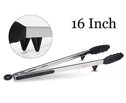 - 16" High quality food grade silicone material and stainless steel. Non-slip, durable and heat-resistant safe up to 230℃/ 446℉.