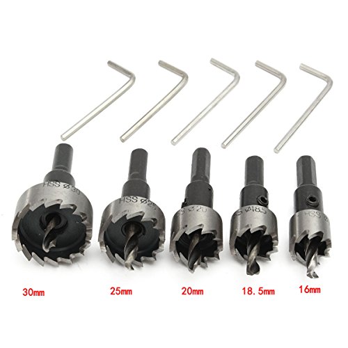 Mohoo 5PCS 16-30MM HSS Drill Bit Hole Saw Set Stainless High Speed Steel Metal Alloy