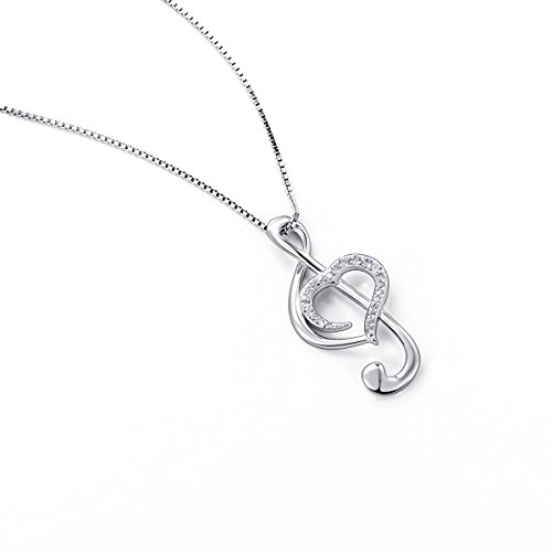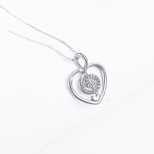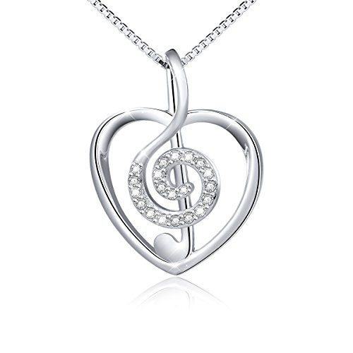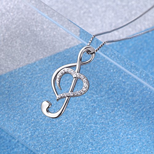 -. Title : (Musical Note Necklace Pendant) 925 Sterling Silver CZ Jewelry For Women, Box Chain 18"