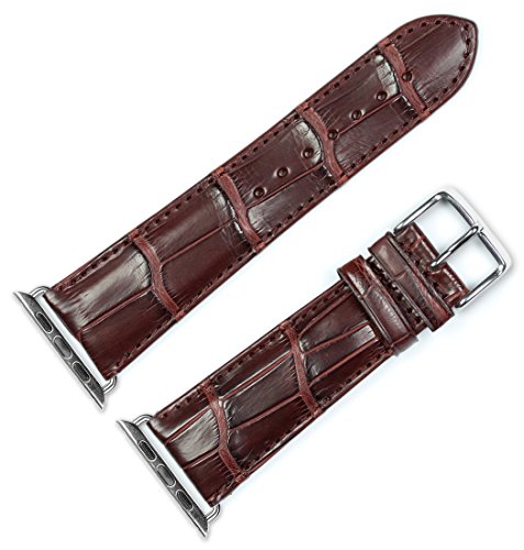 Debeer Replacement Watch Band - Genuine Alligator - [Long Length] - Brown - Fits 42mm Apple Watch [Silver Adapters]