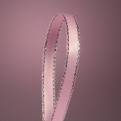 Light Pink Satin Ribbon with Silver Border, 1/4" X 50Yd