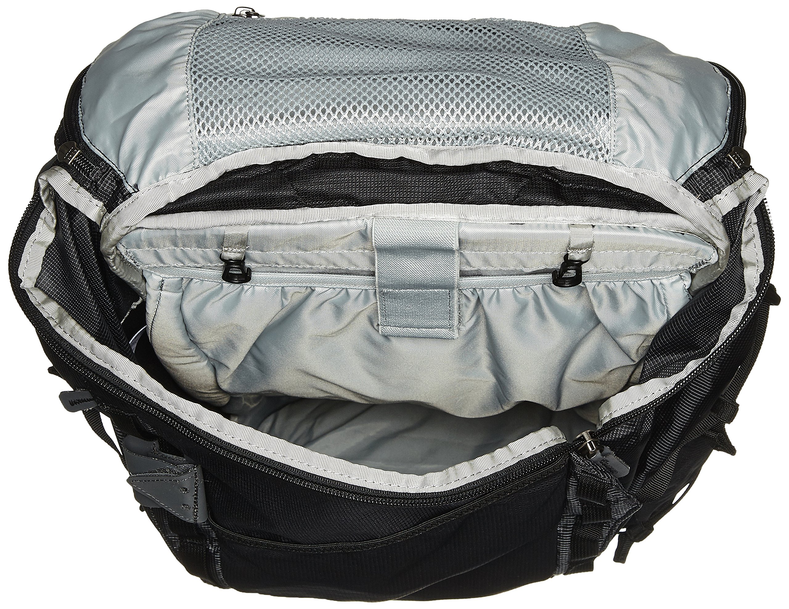 It opens largely in Y shape from the rain lid to the main compartment, making it easy to take out luggage.