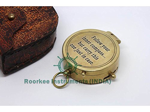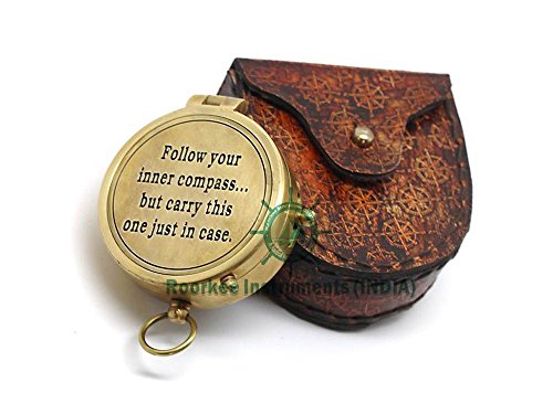 Follow your inner... Solid Brass Compass with Compass Rose Embossed Carry Case