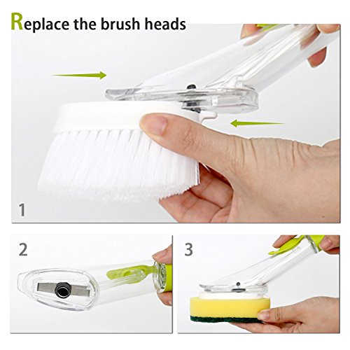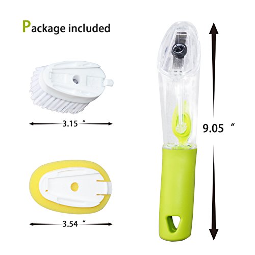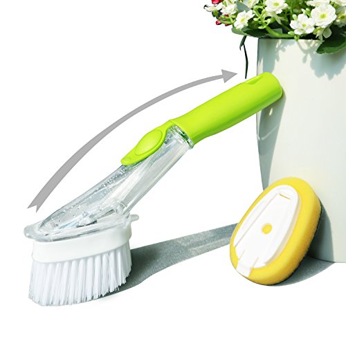 - ERGONOMIC DESIGN - Handle with a soft non-slip grip also acts as a reservoir for the dish soap,comfortable to hold,agile to operate