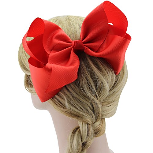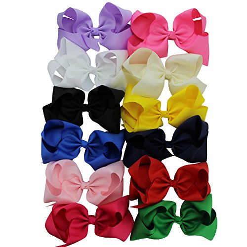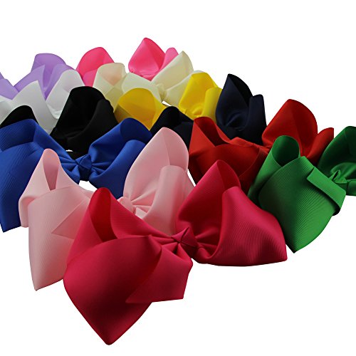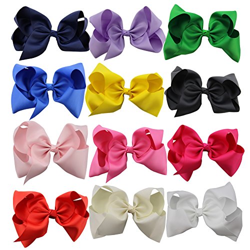 QtGirl Large Hair Bows 12 Pieces 8" Solid Color Big Hair Clips for Women Girls