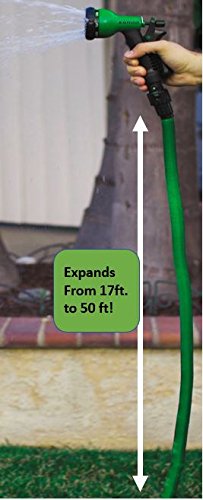 •EXPANDS FROM 17 FT TO 50 FT when the water turns on! It simply drains back to it’s original length of 17 feet, which makes it so EASILY STORED.