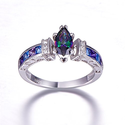 -. Title : Merthus 925 Sterling Silver Created Mystic Rainbow Topaz Ring for Women