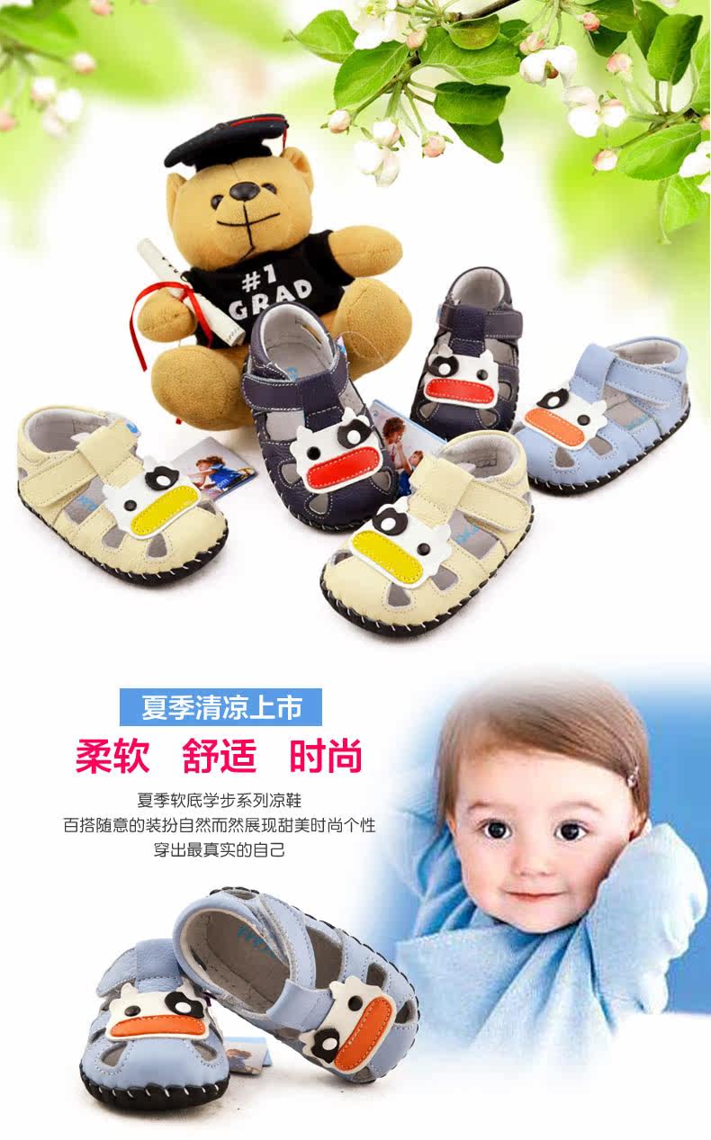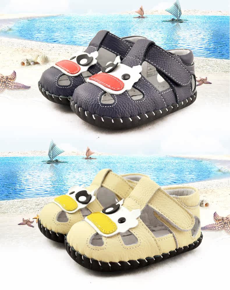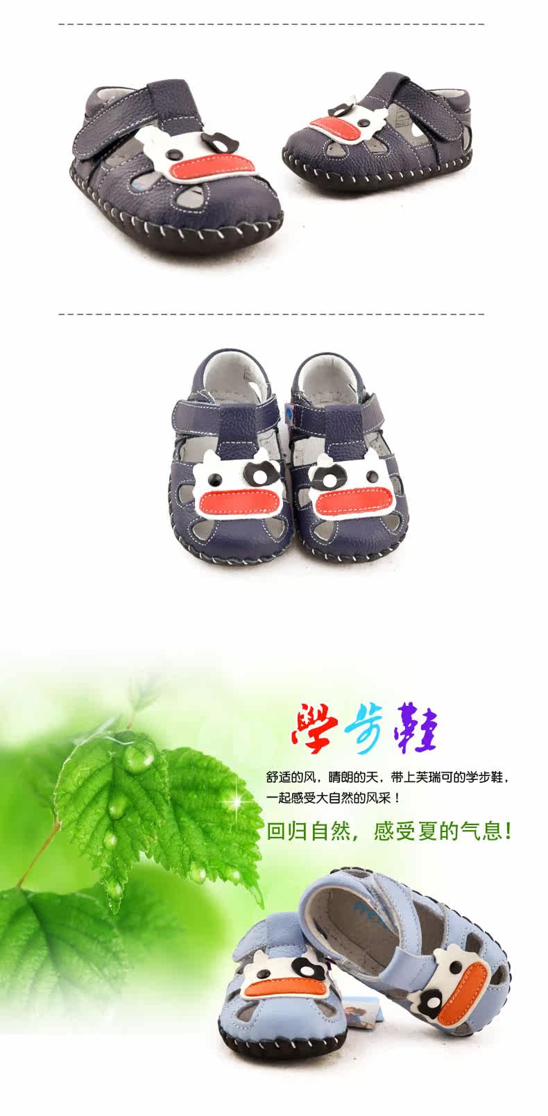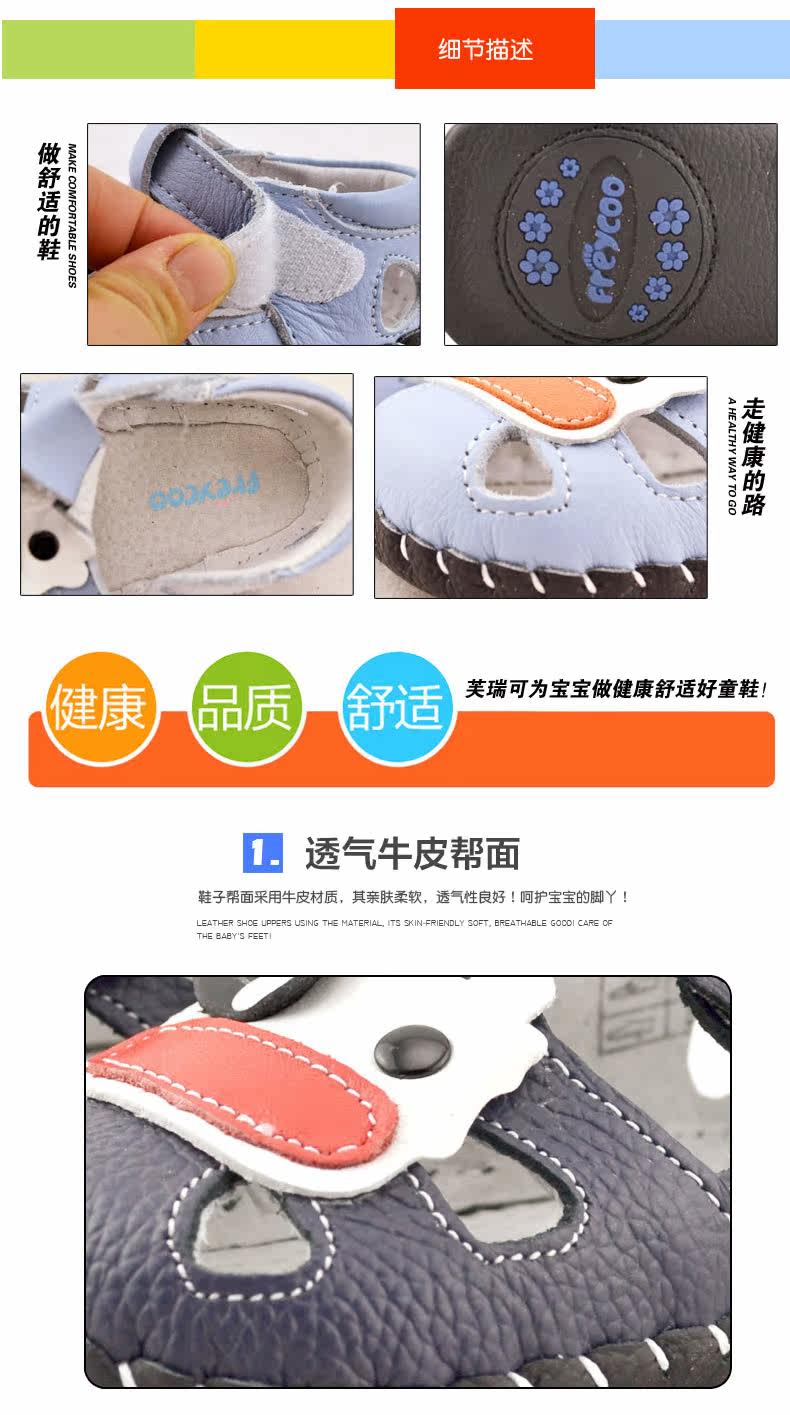 2016芙瑞可夏季新品宝宝学步鞋 真皮软底鞋0-1岁婴儿鞋子包头凉鞋