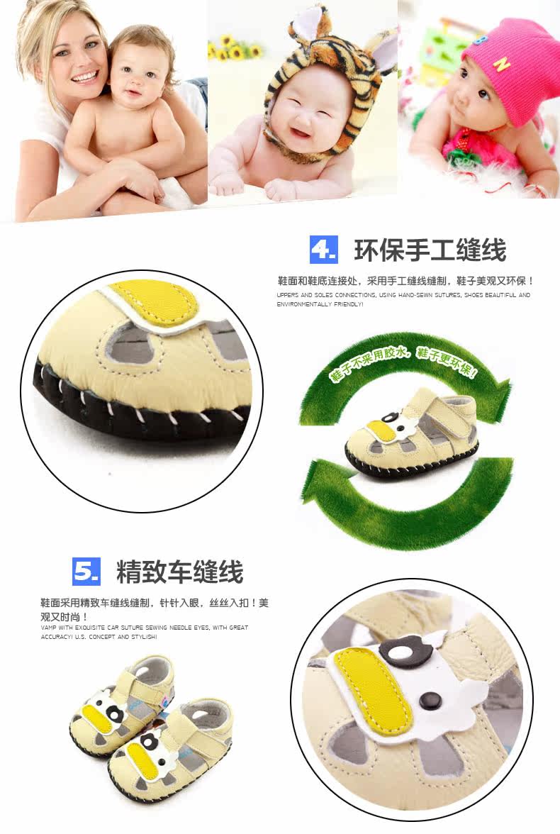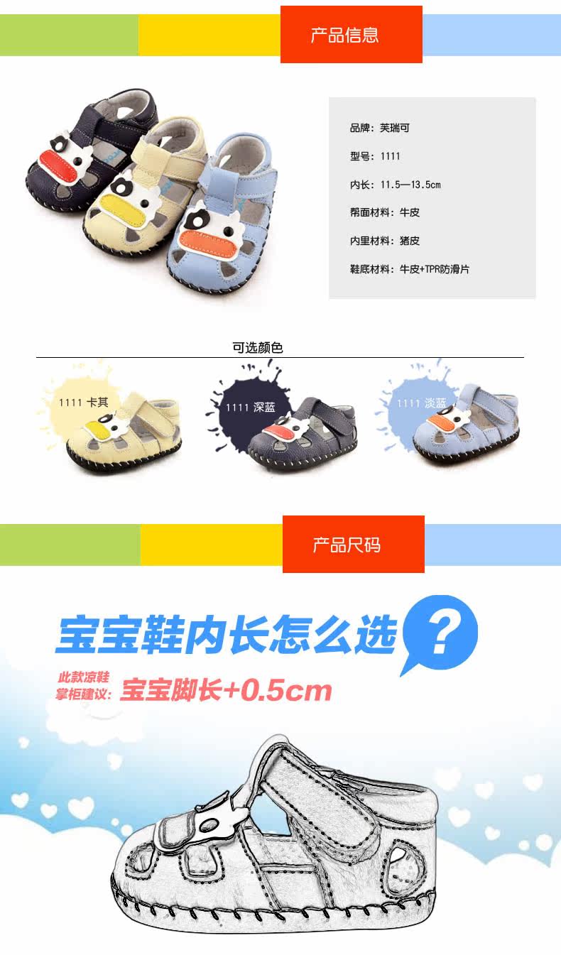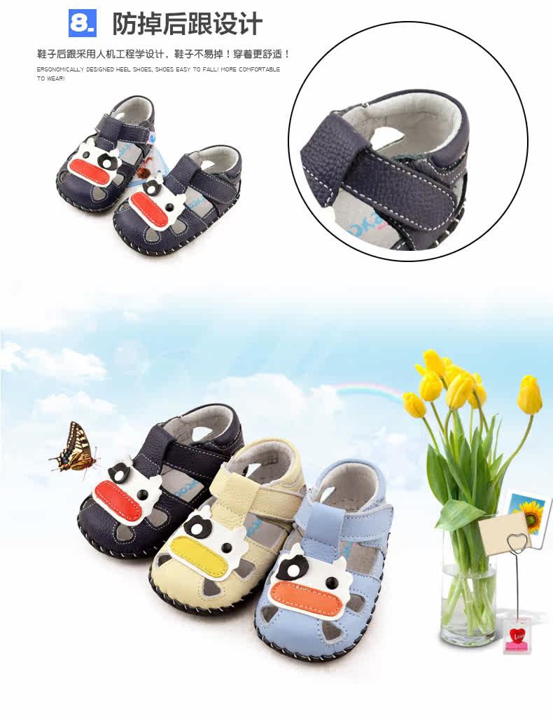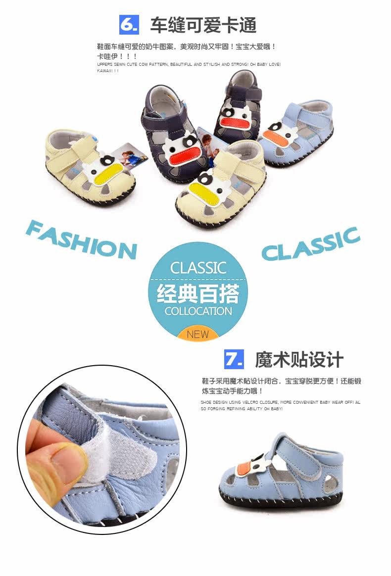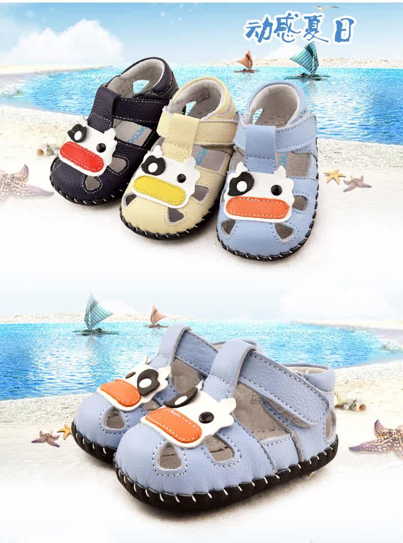 2016芙瑞可夏季新品宝宝学步鞋 真皮软底鞋0-1岁婴儿鞋子包头凉鞋