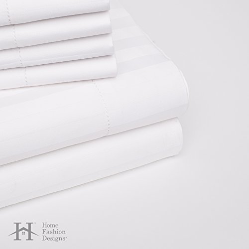 Jameson Collection 1,000 Thread Count Cotton Rich Luxury Sheet Set. Dobby Stripe, Hypoallergenic, Deep Pocket, Fade & Wrinkle Resistant Bed Sheets By Home Fashion Designs Brand. (Queen, White)
