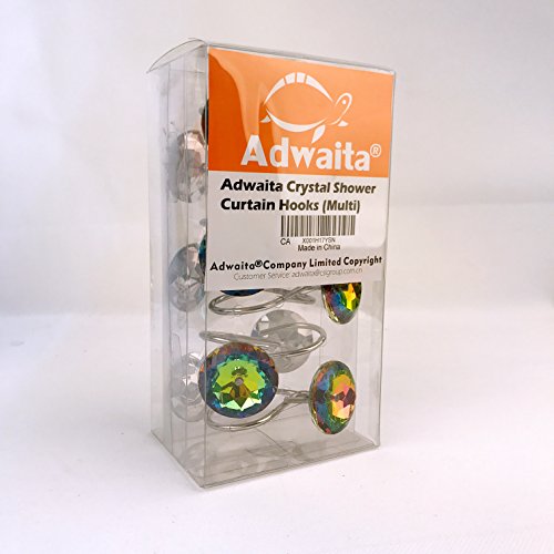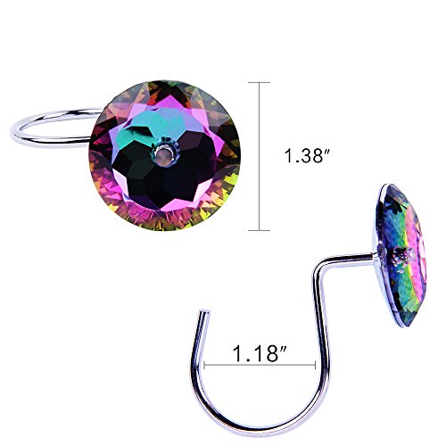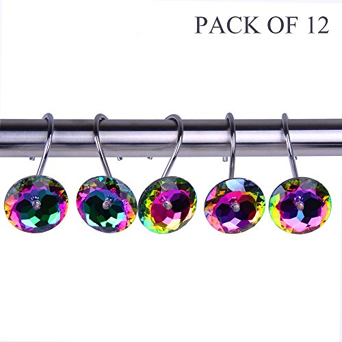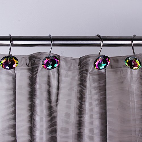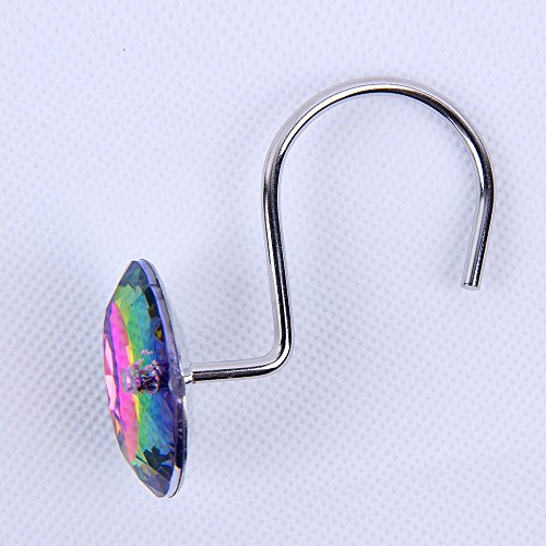 Adwaita Decorative Shower Curtain Hooks - Glass Crystal Rhinestones - Set of 12 ( Multi )