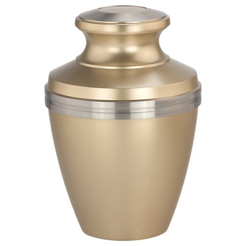 Avalon Brass Cremation Urn by Silverlight Urns, Gold with Silver Trim Adult Urn for Ashes, 10 Inches Tall