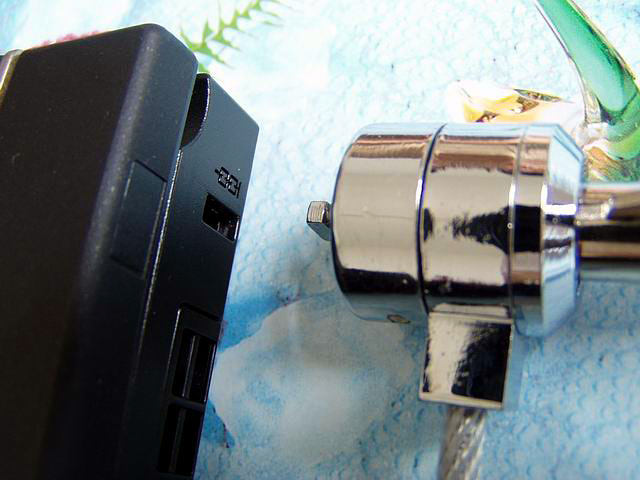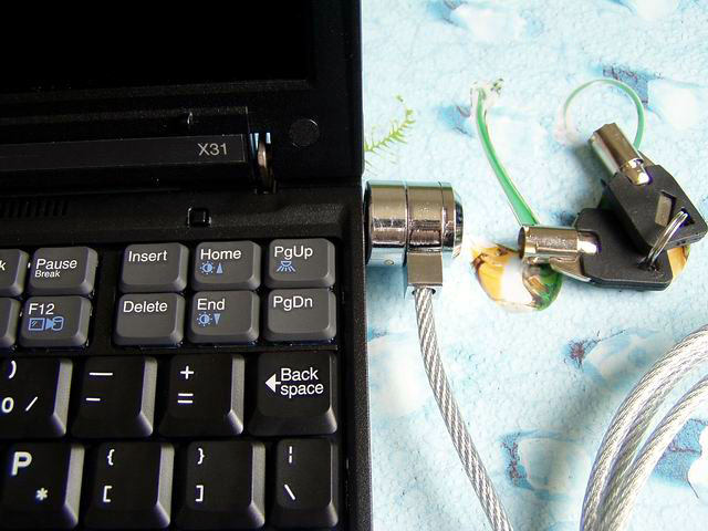 使用时只要把钢绳固定于固定物上,锁身从绳套中穿出,接到笔记本的锁孔,锁住锁头即可保证笔记本安全,防止主人没注意时笔记本被别人拿走的情况。