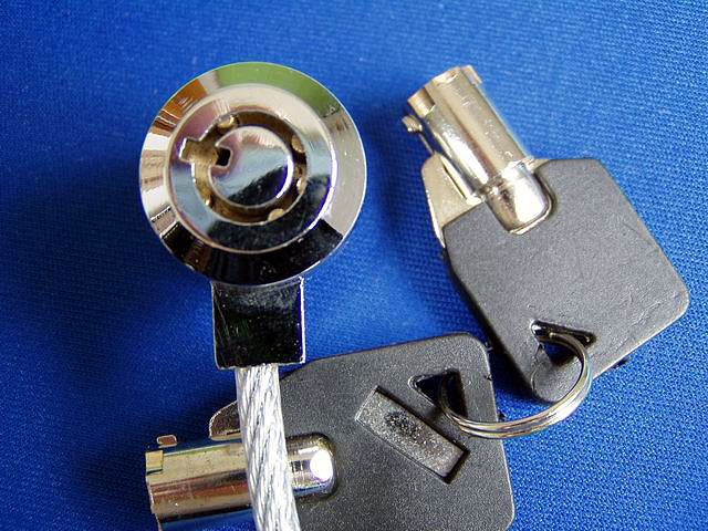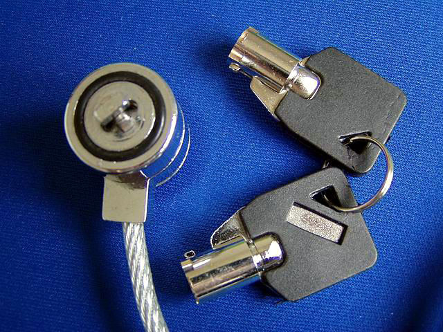 本笔记本锁为电镀钢缆线,长约1米(合金钢材料制做);锁头采用双钥匙,整个锁身制做精巧,使用安全,携带轻便。