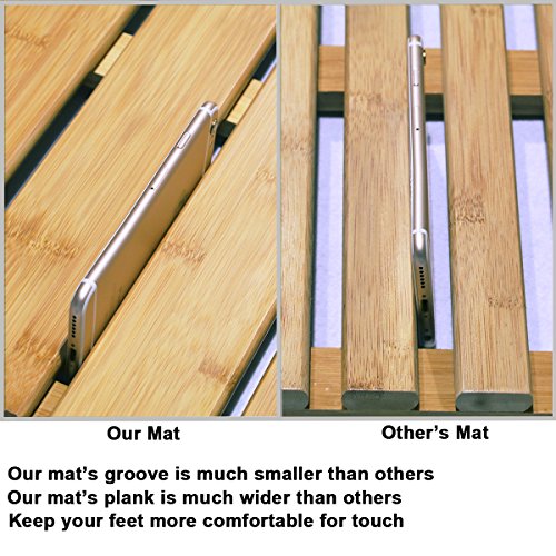 - SPECIAL DESIGN: 6 wide slats on the surface,Vented design for drying faster and ensures a quick flow of air and water,12 anti-slip gaskets on the bottom, keep the mat firmly in the place.