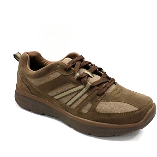 Binding : Apparel Product Description Faded Glory Men's Canvas Oxford Shoe - These classic Oxford shoes in dark khaki are available in two sizes -- 12 and 13. Faded Glory brand. They are made from a durable synthetic suede - like material on the outside and soft fabric on the inside. A great casual dress shoe or everyday comfortable walking shoe. 0
