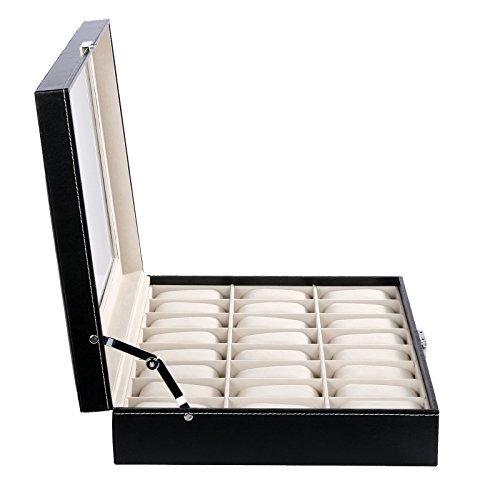 -. Title : Garain Black Watch Jewelry Display Box, 24 Grid Case Storage Organizer for Men and Women