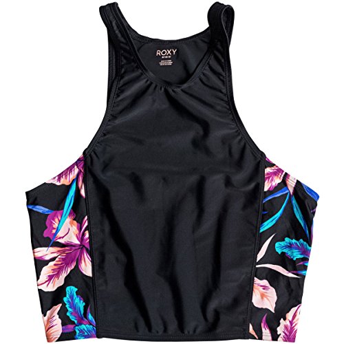 Cropped, sleeveless rash guard with hawaiian print on sides.