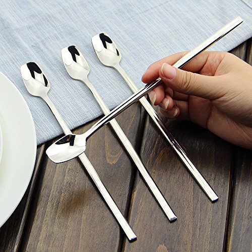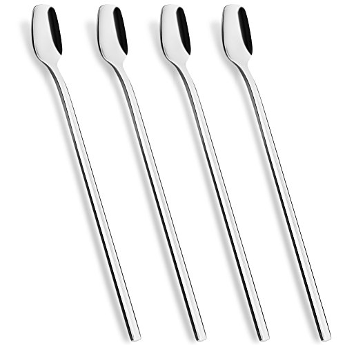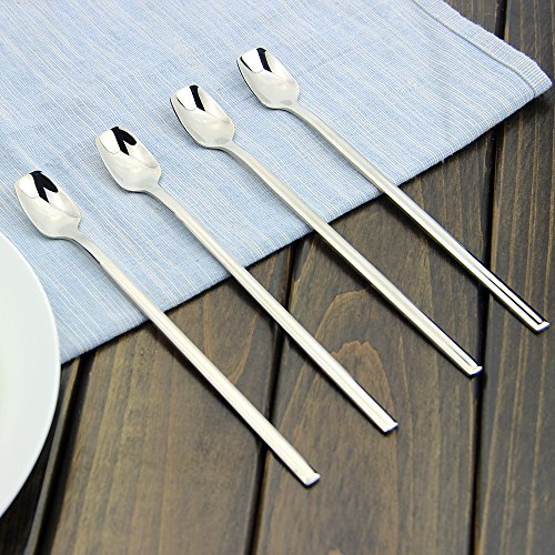 Long Ice Tea Spoon, AOOSY 7.9 inches Stainless Steel Long Handle Slender Tea Bartending Dessert Bar Mixing Cocktail Stirring Spoons, Set of 4