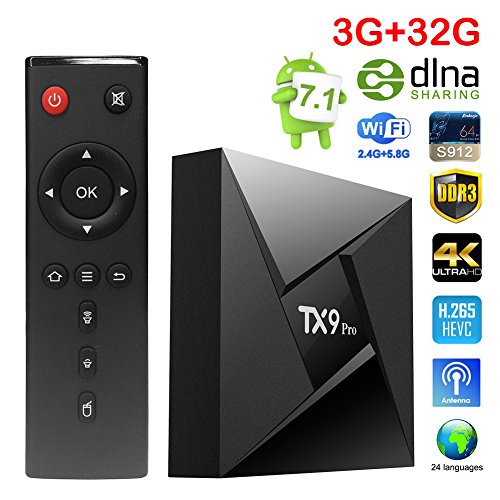 -. Title : Sawpy TX9 PRO Smart tv box Android 7.1 Amlogic S912 3GB+32GB BT 4.0 2.4/5 Dual-Band WiFi 4K UHD & LAN VP9 DLNA H.265