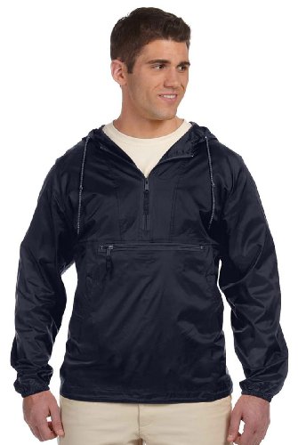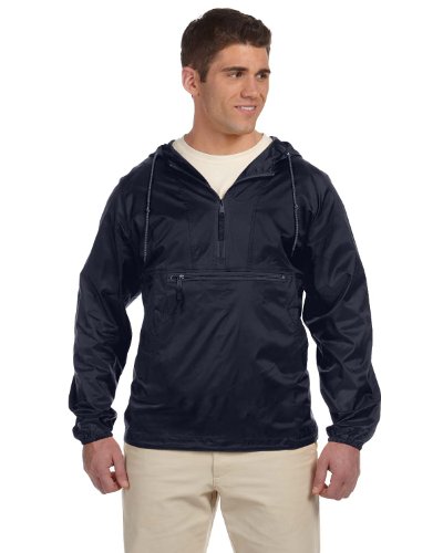 Harriton Men's Nylon Packable Pullover Hooded Jacket