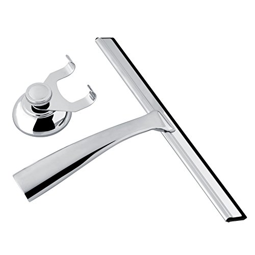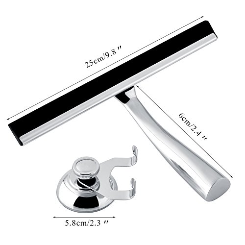 TOPINCN Shower Squeegee,Bathroom Stainless Steel Window Mirror Glass Door Tile Wiper with Suction Storage Hook,10inch