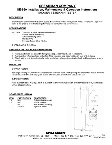 -. Title : Speakman SE-950 Complete Shower and Eyewash Tester with 5 Gallon Bucket and Lid,