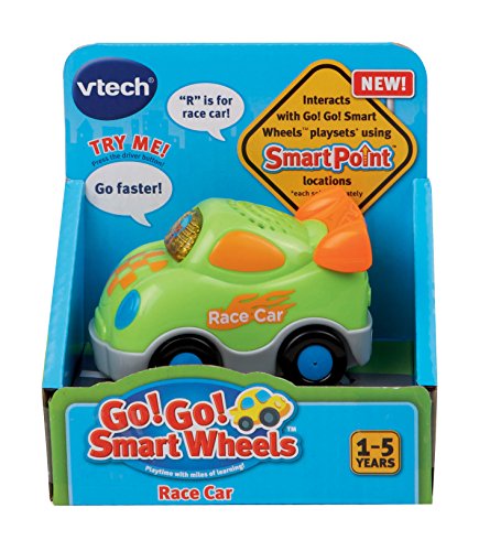 Race into the learning zone with the Go! Go! Smart Wheels Race Car from VTech. This vehicle is perfectly sized for little hands and entertains your child with a light-up driver button that activates music and sounds. your child will learn about the letter "R: and the name of the vehicle through pretend play.