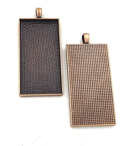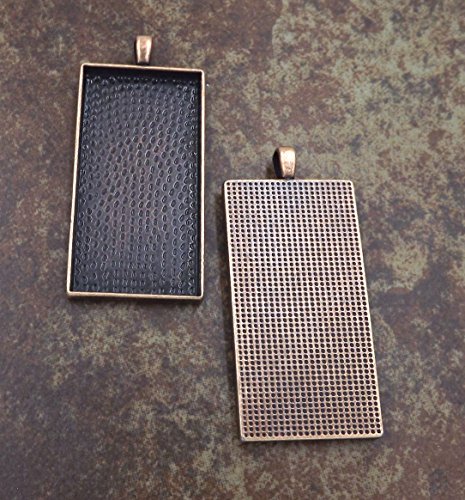 20 Deannassupplyshop Rectangle Pendant Trays - Antique Copper Color - 25X50mm - Pendant Blanks Cameo Bezel Settings Photo Jewelry - Custom Jewelry Making