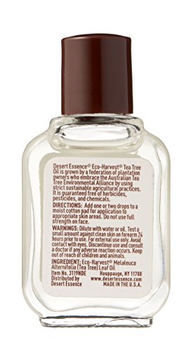 Maintain healthy and glowing skin, use Desert Essence Eco-Harvest Tea Tree Oil to effectively treat problem skin, deep clean pores and relieve redness. This essential oil's inherent antiseptic qualities make it suitable for multiple uses including skin care, household cleansing and therapeutic pedicure treatment. For external use only.Feature