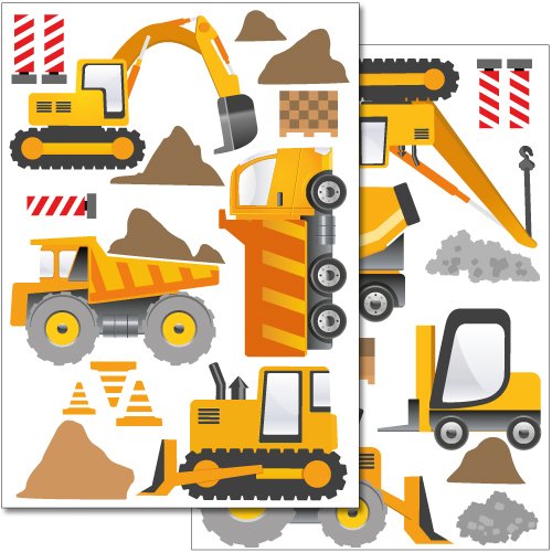 Wandkings wall stickers Construction Machines Sticker Set – more than 30 stickers on 2 US letter sheets (each 8.3 x 11.7 inch)