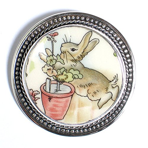 -. Title : Broken China Jewelry Beatrix Potter Peter Rabbit Geranium Sterling Brooch Pin Pendant
