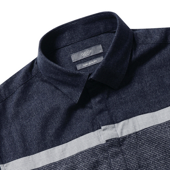 - 블록 믹스 패턴 텍스쳐의 모던한 남성 셔츠.