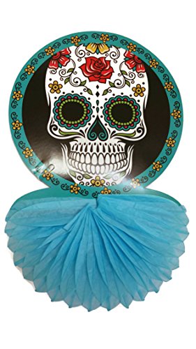 -. Feature : INSTANT Dia de los Meurtos Party Pack includes 119 pieces to decorate your next event / EVERY PIECE has a matching turquoise blue theme to please your Day of the Dead fan / Includes 3 hanging decorations and 1 large table centerpiece, plus protective tablecloth / Plus you get enough plates, napkins, and utensils to service up 16 people / BLACK BALLOONS finish the decor, just inflate