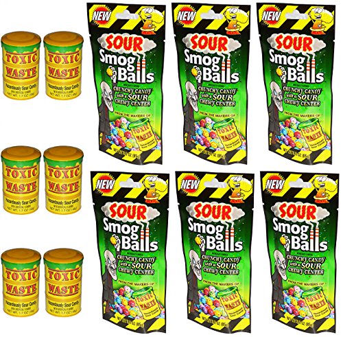 -. Feature : Toxic Waste Ultra Sour Candy and Sour Smog Balls Variety Pack of 12 / Contains 6 (3 Ounce) Bags of Sour Smog Balls and 6 (1.7 Ounce) Tubs of Toxic Waste Hazardously Sour Candy / Ultra Sour Candy Great for Parties, Trick or Treat, or Grab Bags